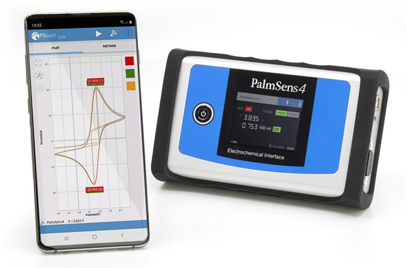 - EmStat4X:超小型便携机型和内置丝印电极接口,可直连安卓手机(PSTouch App),适合单兵作战的快速筛查,降低现场操作门槛。