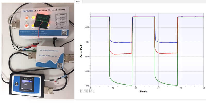 多功能LED光源系统由PalmSens4便携式电化学分析仪和多功能LED光源系统构成,可实现多种光电化学测量,同时光源和电化学测试两者同步控制。也可以通过蓝牙方式控制,把整体放入暗箱、手套箱等各种密封的环境中,确保不受外部环境的干扰。